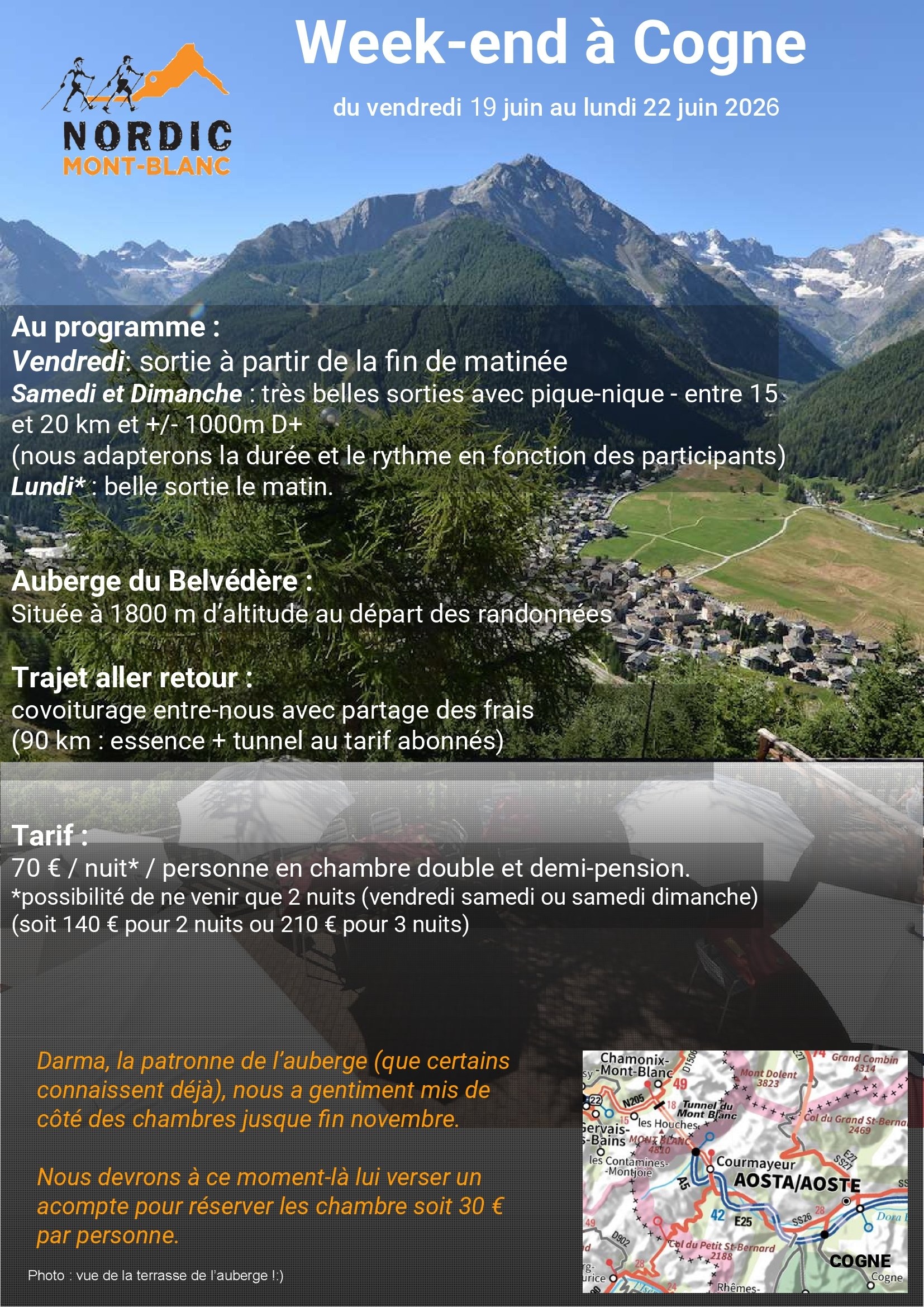 Comme l’année dernière nous nous rendrons sur les hauts de Combloux pour une jolie balade sur la neige, pour rejoindre le chalet de la petite Ravine et manger la fondue